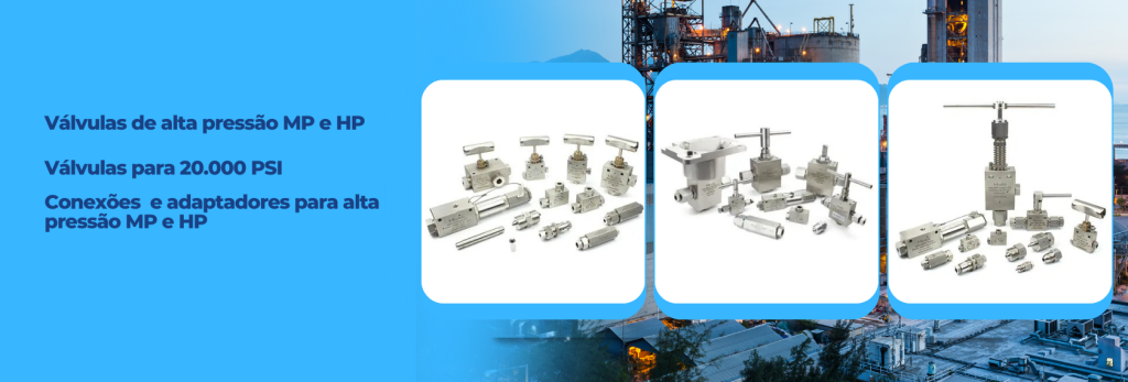Válvulas, conexões, cilindros, mangueiras, painéis de atuação, atuadores, réguas lineares.